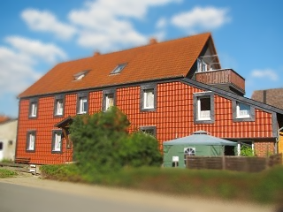 mit einigen vorhandenen Wirtschaftsgebäuden.